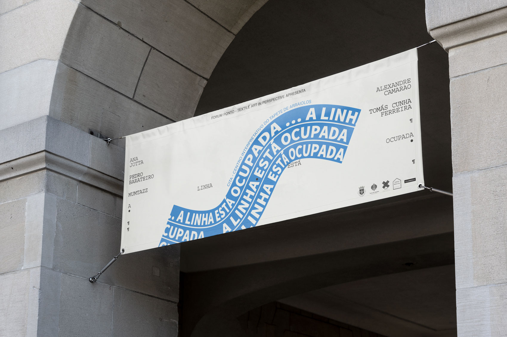 “A linha está ocupada”, a collective exhibition by artists Ana Jotta, Alexandre Camarão, Pedro Barateiro, Tomás Cunha Ferreira and Mumtazz, at Interpretive Center of Arraiolos Carpet.