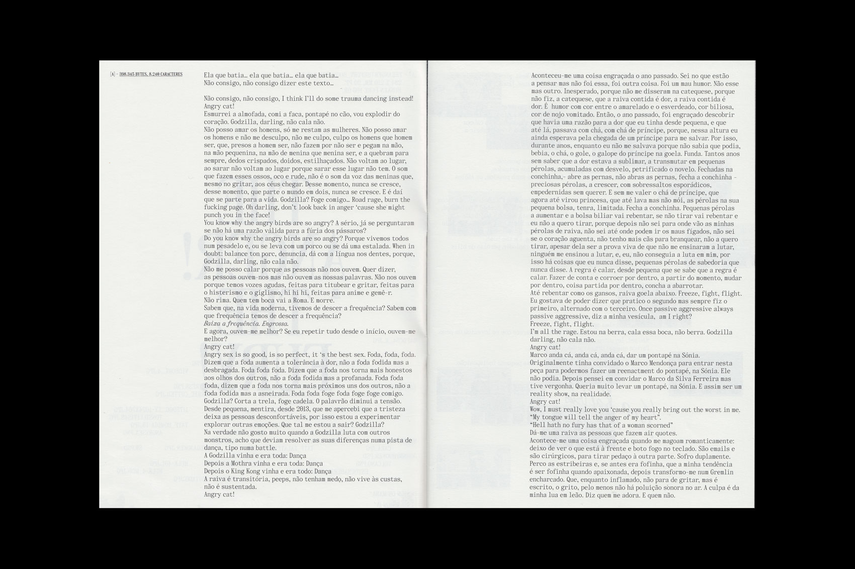 The Anger! The Fury! Book is based on the performance, with the same title, developed by Sónia Baptista.